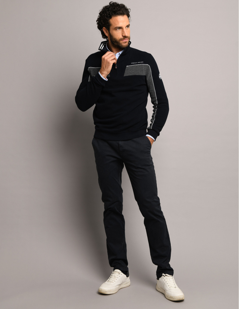 Découvrez le polo Navy de DELAHAYE RACING, où l'élégance sportive se mêle à un raffinement urbain.