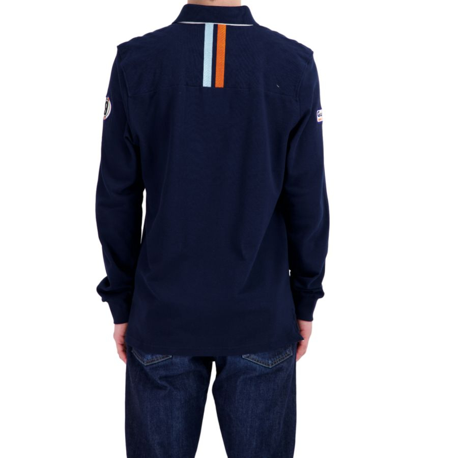 Réf. : GU24POM02 - Polo Gulf Classic Nr9 Blue Manches Longues / GULF Polo Homme à prix discount